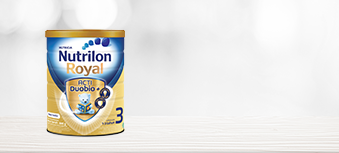 Aduk sampai larut dan Nutrilon Royal siap diberikan untuk si Kecil