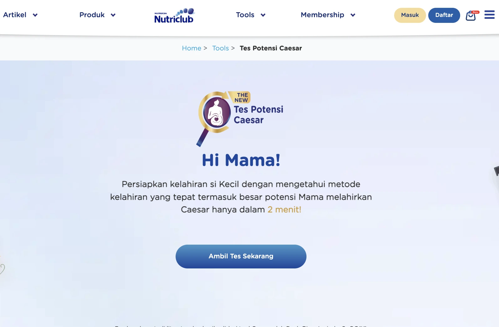 - Nutricia meluncurkan tools Tes Potensi Caesar pertama kali pada tahun 2020, kemudian menghadirkan versi terbaru Tes Potensi Caesar 2.0 pada Oktober 2021 untuk membantu ibu hamil melakukan deteksi dini potensi melahirkan secara caesar.